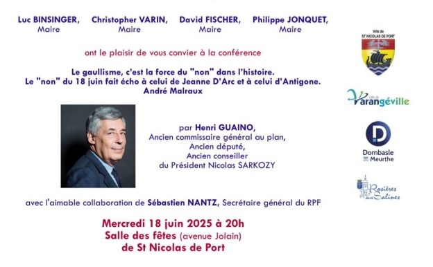 A l’occasion du 18 juin, Henri Guaino sera en Meurthe-et-Moselle, à Saint-Nicolas-de-Port (12 km de Nancy), à 20h pour une conférence sur le général de Gaulle.